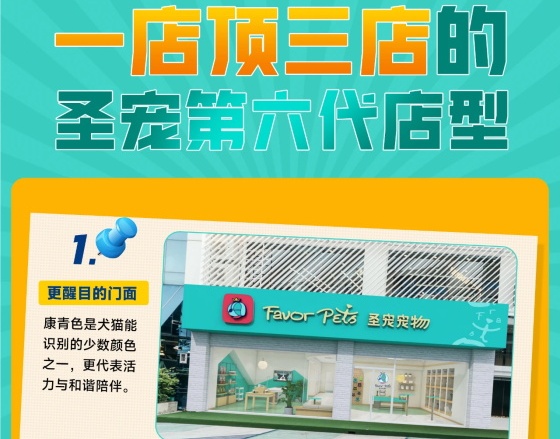 圣宠宠物升级鲜食业务的第六代店型来啦!这次又哪些不一样?圣宠宠物第六代店型焕新上市,这次又有什么啥不一样?特别提示即使是已经开业的宠物店,也能升级【鲜食+康护】操作区哦【九大亮点,全面升级】门面焕新,颜值更高不仅颜值更高,还懂“宠物心”,采用宠物友好康青色,更代表活力与和谐陪伴升级空间布局,更高坪效分...